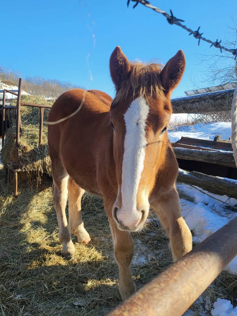 この仔は5月末生まれという点が気になりますが、1ヶ月前に生まれた馬と遜色ない体格に成長しております。